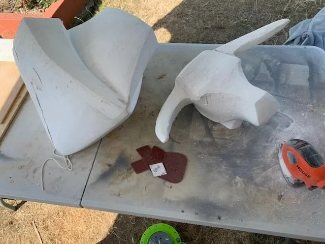 The original bronze was then 3D scanned, enabling the form to be enlarged while retaining its core geometry. At this stage, the work was not simply scaled up, but carefully reworked. Through extensive sanding and refinement, the planes were sharpened, transitions clarified, and the sense of forward presence strengthened. the head also refined and changed slighlty.